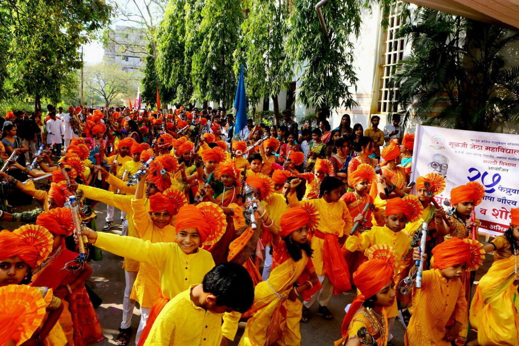 जळगाव ( वास्तव पोस्ट ) : ‘अभिजात मराठी…अभिमान मराठी…, लाभले आम्हास भाग्य बोलतो मराठी’ या घोषणांनी काव्यरत्नावली परिसर मराठीमय झाला. निमित्त होते, मराठी भाषा गौरव दिनाचे. मूळजी जेठा महाविद्यालयाच्या मराठी विभागाच्या वतीने ‘मराठी भाषा गौरव दिन’ मोठ्या उत्साहात साजरा करण्यात आला. सकाळी काव्यरत्नावली चौकातून ग्रंथ दिंडी व शोभायात्रेने कार्यक्रमाला सुरुवात झाली. साहित्यिक माया धुप्पड यांनी पालखीचे पूजन केले.