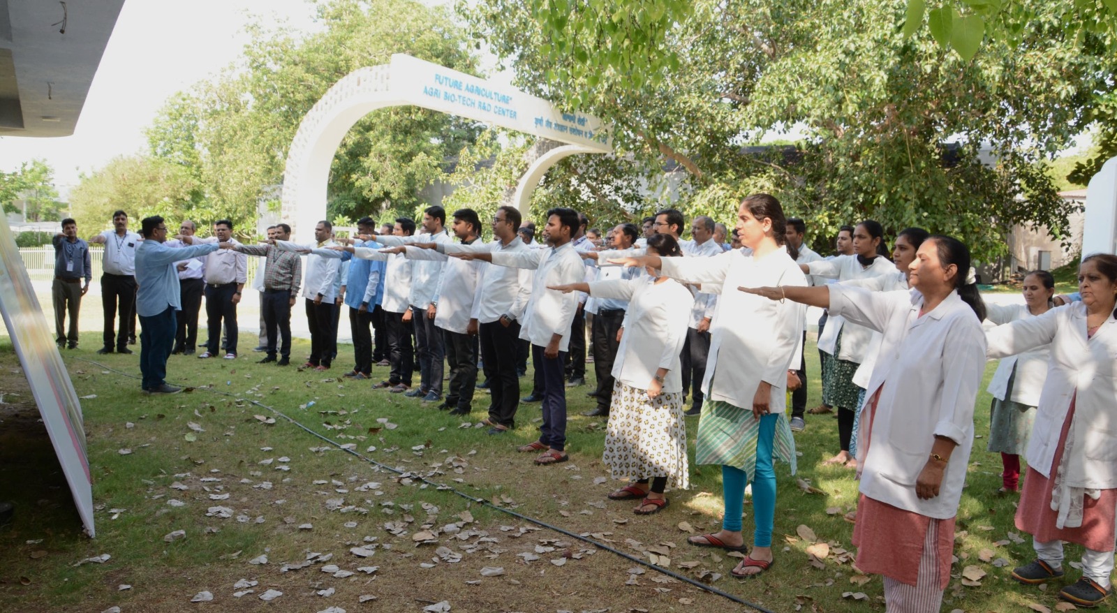 जैन हिल्सच्या ॲग्री पार्क येथे सहकाऱ्यांना गांधी रिसर्च फाऊंडेशनचे सहकारी आणि जळगाव जिल्हा लोकसभा २०२४ चे मतदान जनजागृतीचे अधिकृत आयकॉन मदन रामनाथ लाठी यांनी प्रतिज्ञा दिली.