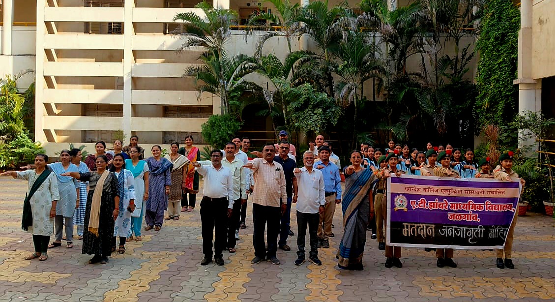 जळगाव ( वास्तव पोस्ट ) : खान्देश कॉलेज एज्युकेशन सोसायटी संचालित एटी झांबरे माध्यमिक विद्यालय मतदान जनजागृती मोहीम राबवण्यात आली. या अंतर्गत विद्यार्थ्यांनी पथनाट्य सादर केले. त्याचप्रमाणे त्याचप्रमाणे सर्व शिक्षक बंधू भगिनींनी आणि विद्यार्थ्यांनी मतदार प्रतिज्ञा घेतली. याप्रसंगी शिक्षकांसाठी आणि पालकांसाठी मतदान एक राष्ट्रीय कर्तव्य या विषयावर निबंध स्पर्धा घेण्यात आली. शाळेचे मुख्याध्यापिका प्रणिता झांबरे, पर्यवेक्षक नरेंद्र पालवे आणि सर्व शिक्षक बंधू भगिनी याप्रसंगी उपस्थित होते.