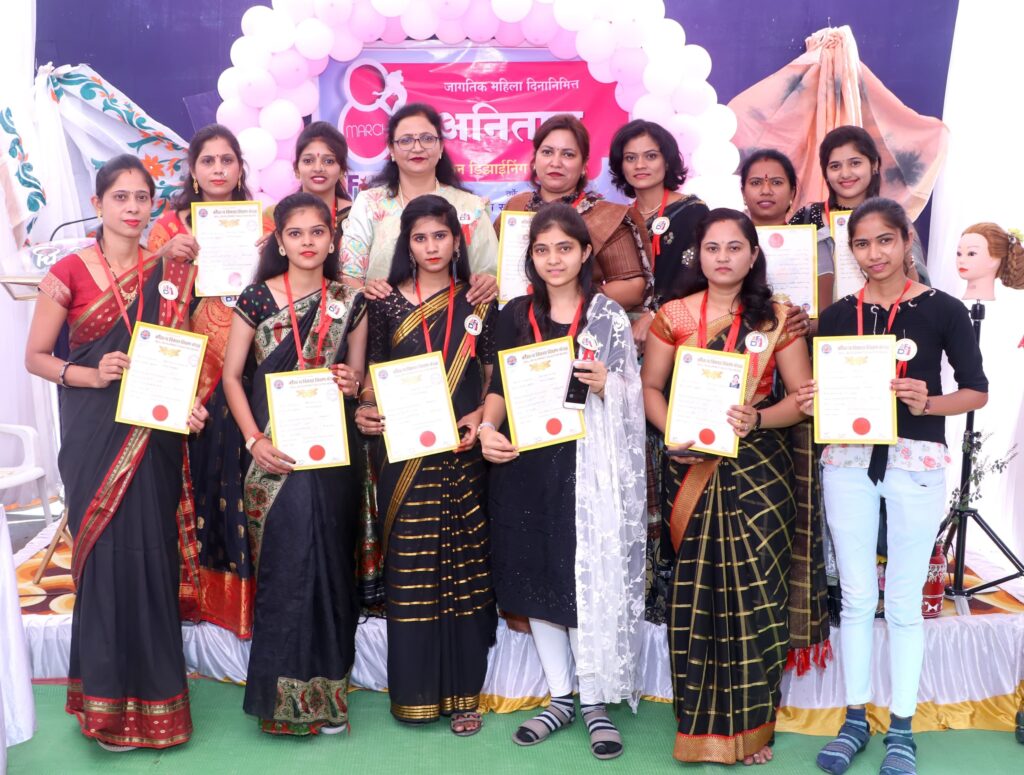 अनिताज् डिजाईनिंग इन्स्टीट्युटमध्ये विविध कोर्स – अनिताज् डिजाईनिंग इन्स्टीट्युटमध्ये विविध कोर्स आहेत त्यात फॕशन डिझाईनिंग कोर्समध्ये ब्लाउज व ड्रेस डिझाईन्स, आरी वर्क, वेस्टर्न आऊट फिट ड्रेस, डिप्लोमा व प्रोफेशनल डिप्लोमा इन फॅशन डिझाईन्स, फॅशन सर्व्हिसेस, ब्युटी कोर्स मध्ये डिप्लोमा व प्रोफेशनल कोर्स इन ब्युटी पार्लर, हॉबी कोर्स मध्ये मेहंदी, रांगोळी, पुजाथाली डेकोरेशन, ब्युटी पार्लर सर्व्हिसेस येथे उपलब्ध आहेत, असे प्रास्तविक करताना अनिता नांदेडकर यांनी माहिती दिली. सूत्रसंचालन विद्यार्थीनी पुजा अग्रवाल यांनी केले. खुशी निषांद यांनी आभार मानले.