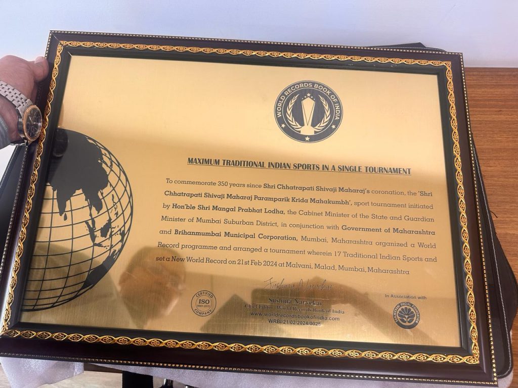 यावेळी कौशल्य विकास मंत्री मंगल प्रभात लोढा म्हणाले, मुंबईत प्रथम पारंपरिक क्रीडा स्पर्धा महाकुंभ यशस्वीरित्या पूर्ण झाली. मुख्यमंत्री एकनाथ शिंदे, उपमुख्यमंत्री देवेंद्र फडणवीस आणि उपमुख्यमंत्री अजित पवार यांच्या मार्गदर्शनात ‘श्री छत्रपती शिवाजी महाराज पारंपरिक क्रीडा महाकुंभ’ आयोजित केले होते.या स्पर्धांना उस्फूर्त प्रतिसाद मिळाला. याची दखल वर्ल्ड रेकॉर्ड्स बुक ऑफ इंडियाने घेतली असून याबाबत त्यांनी प्रमाणपत्र ही वितरण केले आहे.